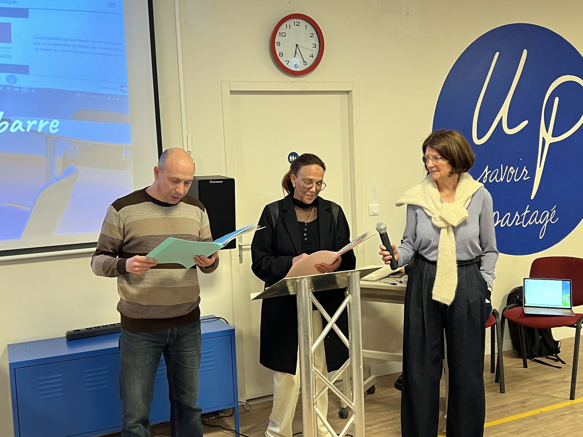 En première partie, vous avez pu découvrir le travail de nos apprenants allophones à travers une restitution des Ateliers Socio-linguistiques et Français Langue Étrangère. Ils ont mis en mots et partagé leur compréhension des valeurs de la démocratie à travers des jeux, poèmes, petites scènes et lectures.